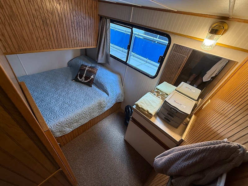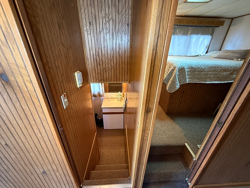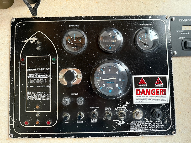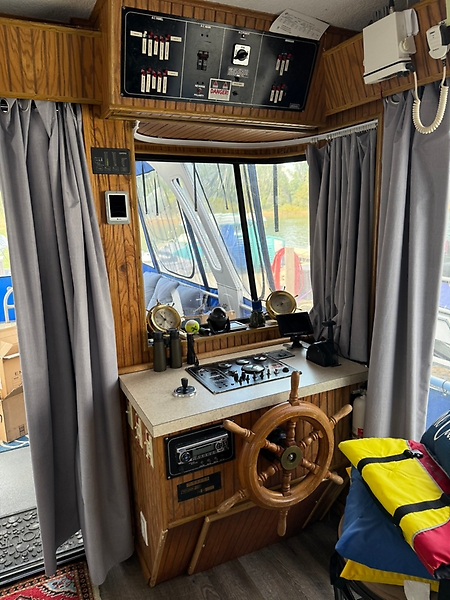 Helm Station with hydraulic steering and controls for bilge pumps, navigation Lights, generator start/stop, AC/DC Panel with 50-AMP service and breakers, Ship/Shore Switch