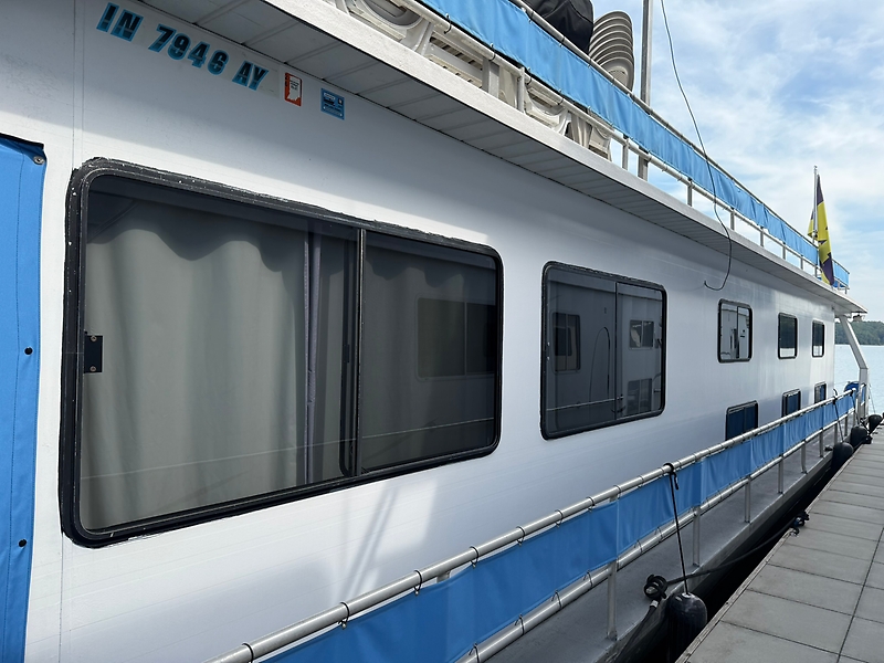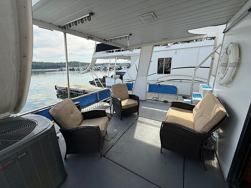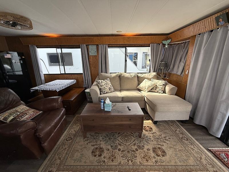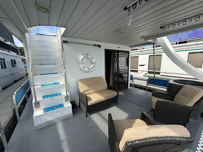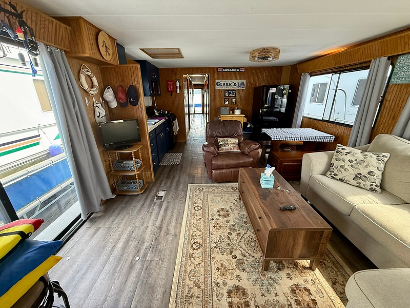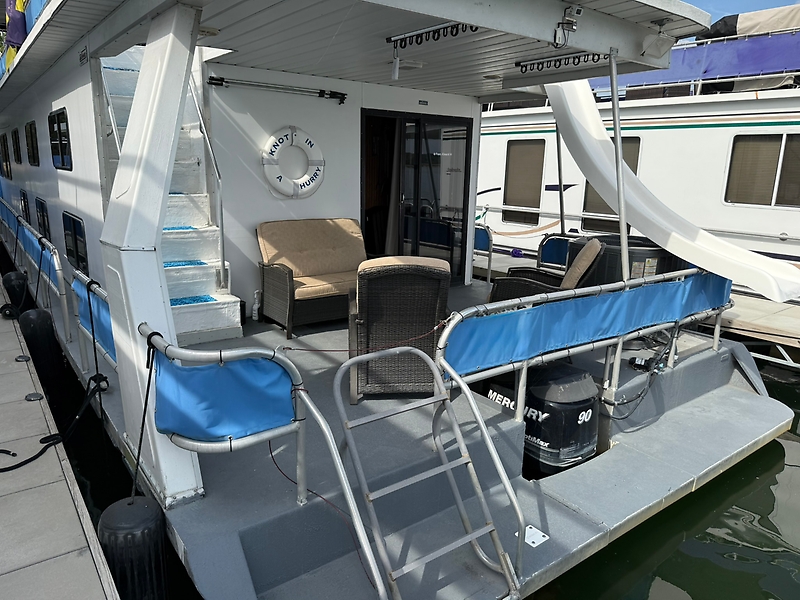 This spacious 16′ x 72′ aluminum houseboat provides catwalks for full walk-around access (great for docking). Outfitted with 6-bedrooms/1.5 bathrooms, full-size appliances and much more, this boat is perfect for large families or entertaining as a “home away from home”.