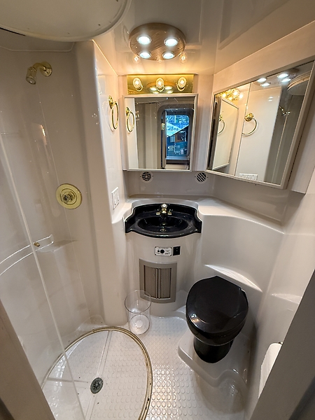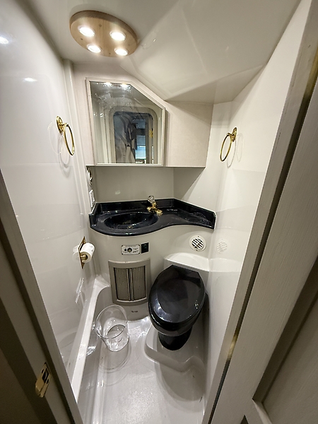 Midship To Port Is a Guest Berth w/Double Bed – Directly Opposite Starboard Is the Head and Vanity