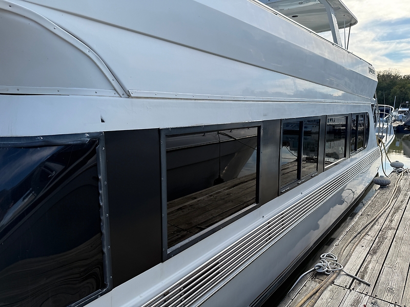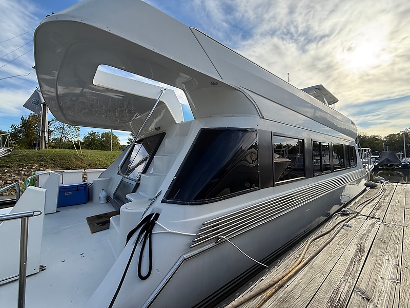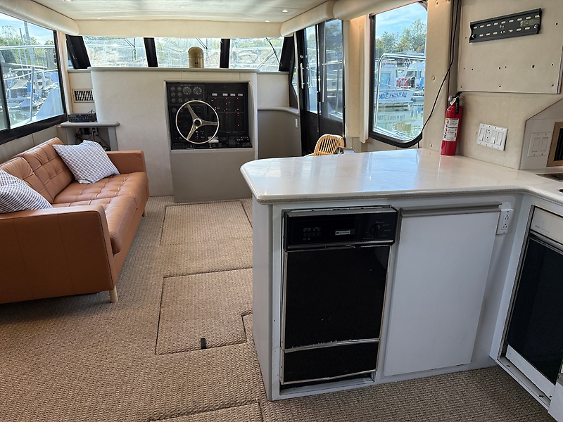 The Salon Area Includes a Driving Station, Queen Sofa bed To Port <> Swivel Rocker Starboard <> Entertainment Center