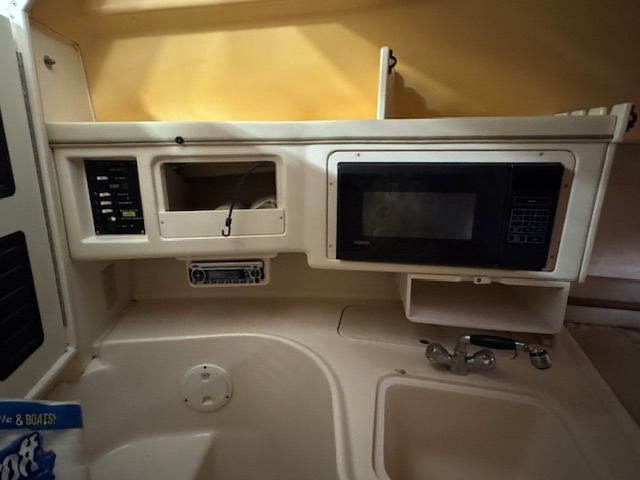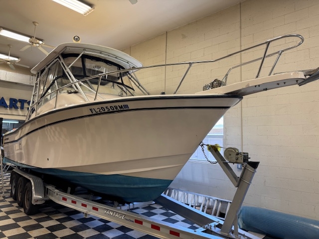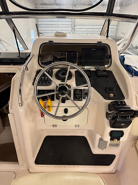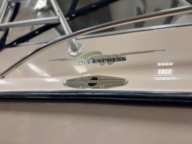 The Grady-White Express 265 is a 26-foot express cabin known for its offshore capability and comfort. Below deck, you’ll find a forward V-berth, compact galley, and enclosed head with sink and shower — ideal for overnight trips. The spacious 58 sq. ft. cockpit offers a center helm, wraparound seating, hardtop with electronics boxes, and ample storage throughout. Anglers will appreciate the 40-gallon LiveWell, 300-quart insulated fish box, and rigging station with sink and storage.